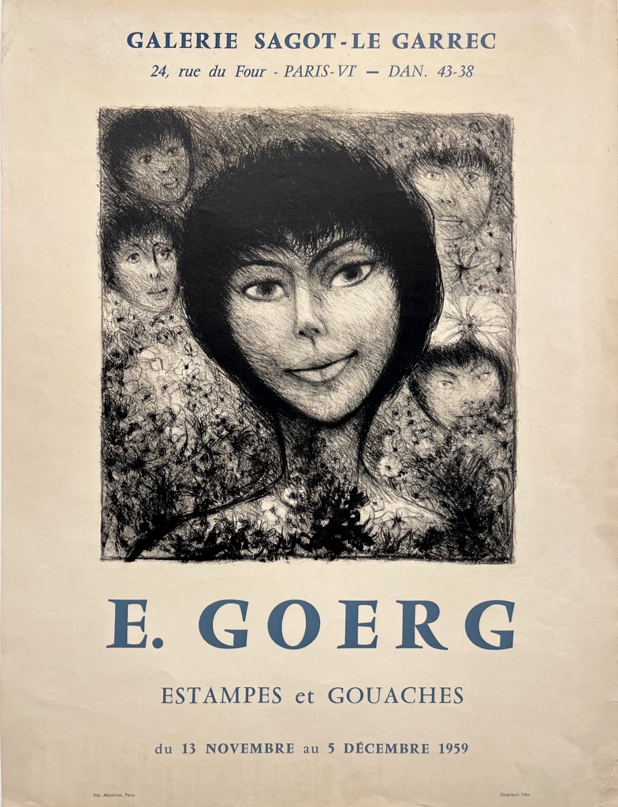 E. Goerg à la Galerie Sagot-Le Garrec – Affiche Expo Litho Desjobert 1959